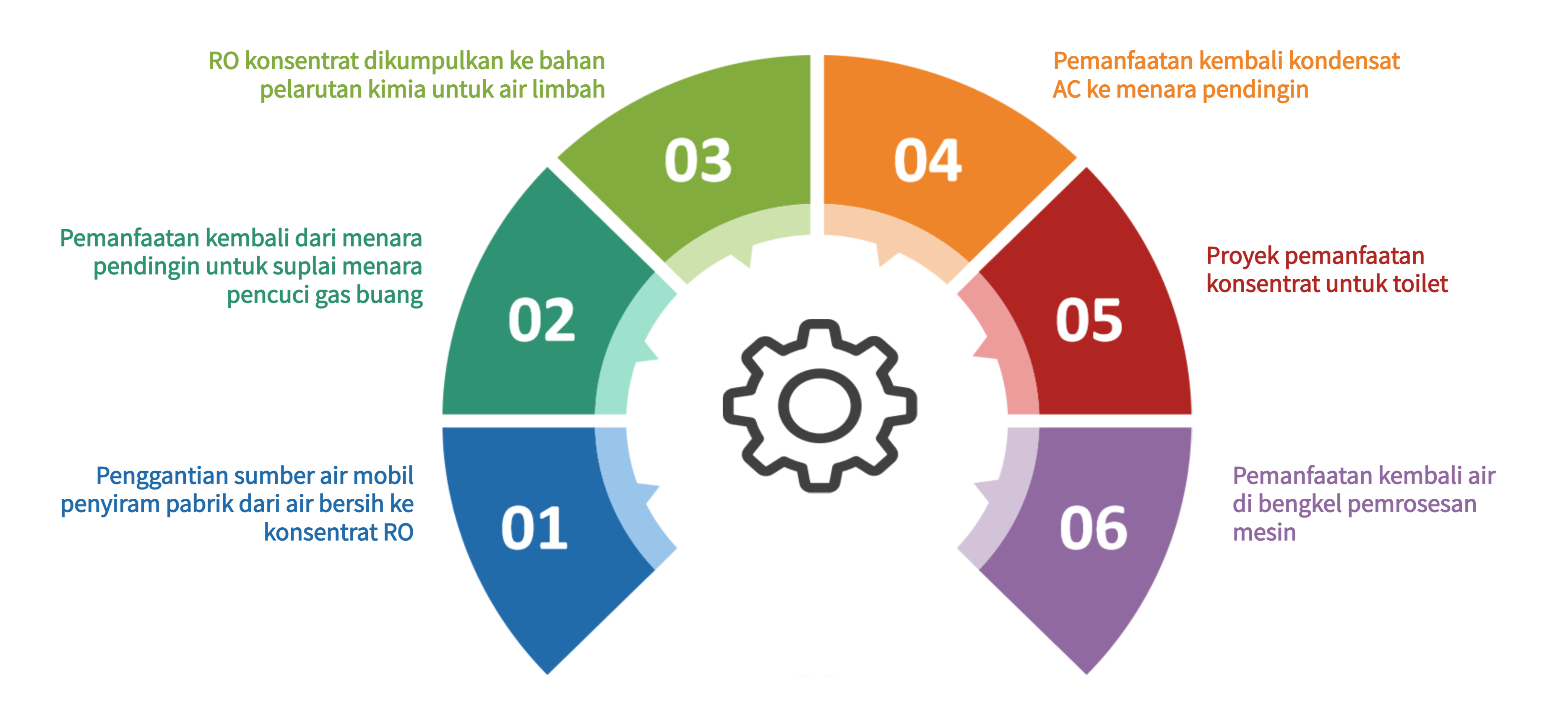 Limbah cair basa pekat dalam jumlah besar yang dihasilkan dari proses pencucian produk di bengkel didaur ulang untuk digunakan dalam proses netralisasi asam pada menara gas buang. Langkah ini tidak hanya dapat menghemat biaya bahan kimia pengolahan gas buang, tetapi juga menurunkan biaya pengolahan air limbah.