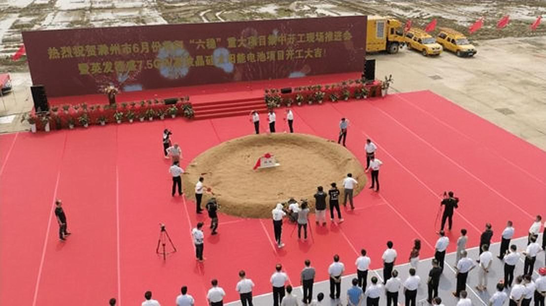 2020年6月23日进行了项目奠基开工仪式,2021年3月15日首片210尺寸电池片正式下线量产。