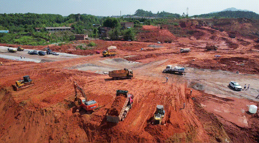“再过几天,现场的机具就会增加至250辆左右,外弃的土方量会增加到每天6至7万方,推进速度是比较快的。”据叙州区创益产投工程部部长高乾坤介绍,根据企业的要求,一车间145亩地,他们会在5月20号以前平场后移交给企业。项目一期的450亩地会在6月10日前移交企业。