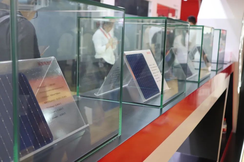本次SNEC展会期间,英发睿能展出了目前市场主流的高效N型电池产品-TOPCon 16BB 电池片和182 PERC 9BB、10BB、11BB电池。