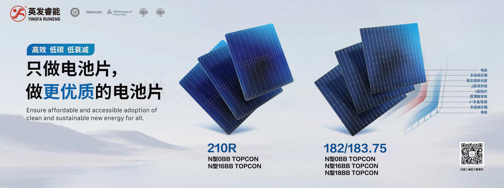 英发睿能将以更为坚定的步伐勇攀光伏领域的巅峰。坚守初心,砥砺奋进,以高效、优质的产品回馈广大客户,为“双碳”目标的早日达成贡献英发力量。与此同时,公司还将持续加大科技创新研发投入,积极开拓BC和钙钛矿叠层电池片技术,推动产线优化升级,力保产品始终引领行业潮流,推动中国光伏产业的技术革新、产品升级和健康发展。