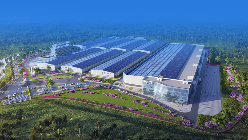 生产基地位于Kawasan Ekonomi Khusus (KEK)Galang Batang, Desa/KelurahanGunung Kijang, Kec. Gunung Kijang, Kab. Bintan, Provinsi Kepulauan Riau,主要用于生产N型TOPCon电池片,总建筑面积约为107,702平方米